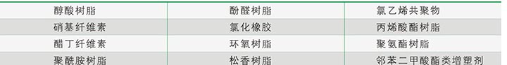 INT 8607樹脂與絕大多數(shù)用于涂料/油墨的樹脂有良好的相容性。包括下列樹脂: